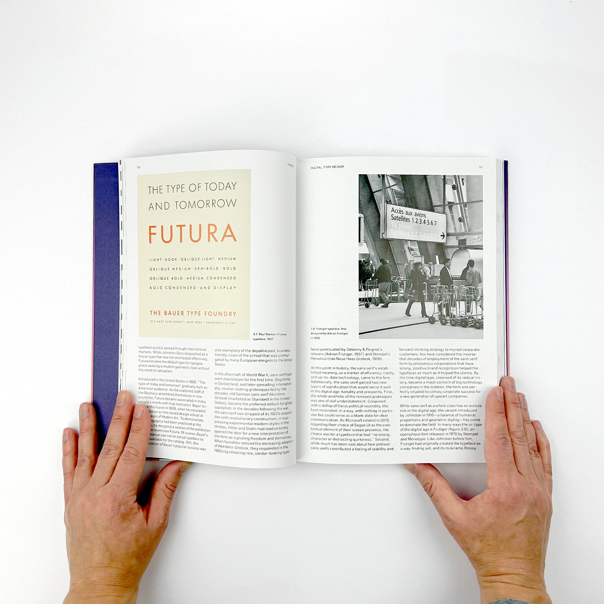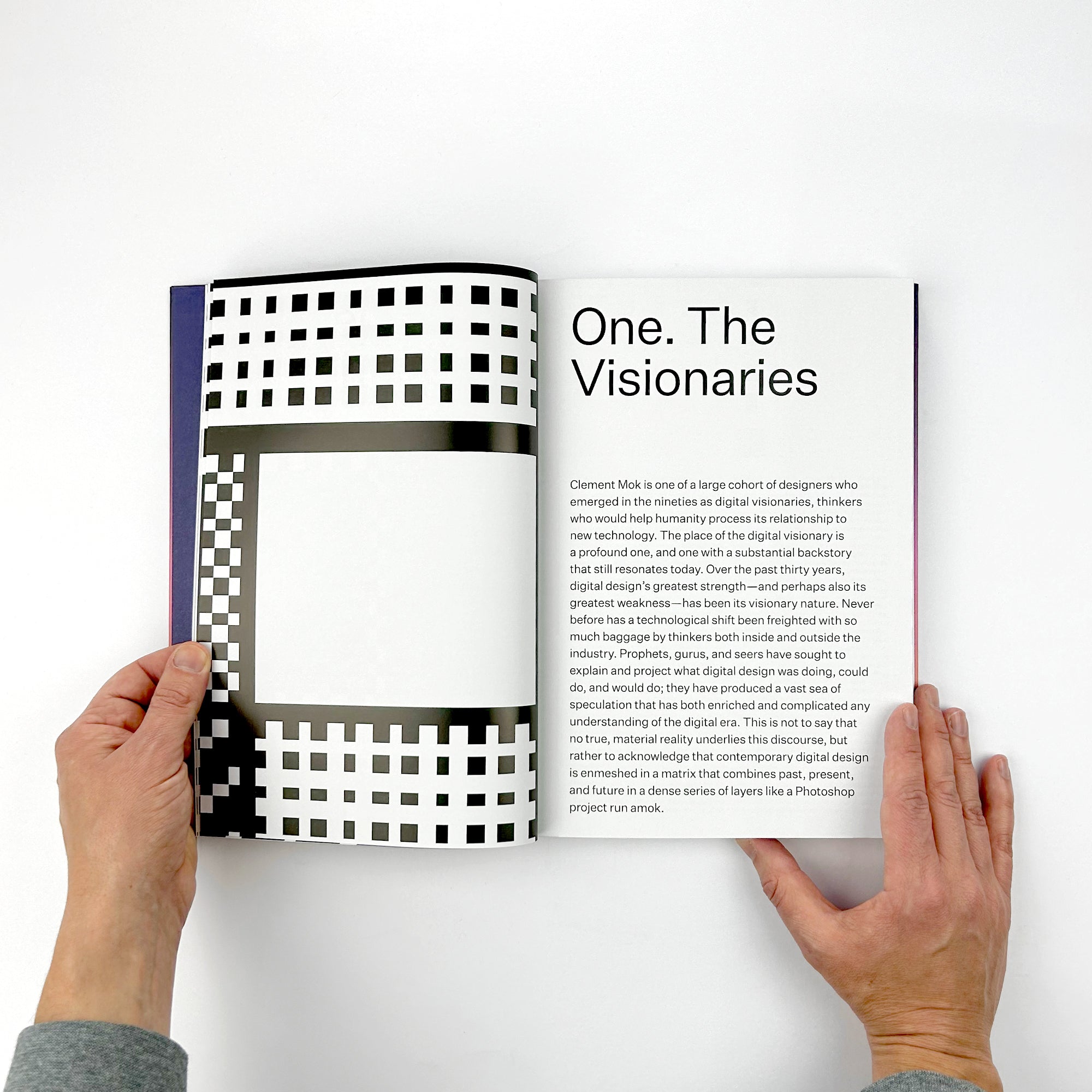 This book’s distinctive cover design features an overlay of raised dots printed in clear ink. The dots are tactile representations of the pixels that make up so much of digital design and refer to the origins of the term “digital”―digitus is the Latin word for finger, the most basic means of counting. As with the printing of braille, the pattern of raised dots is made to be felt with the fingers, or digits.