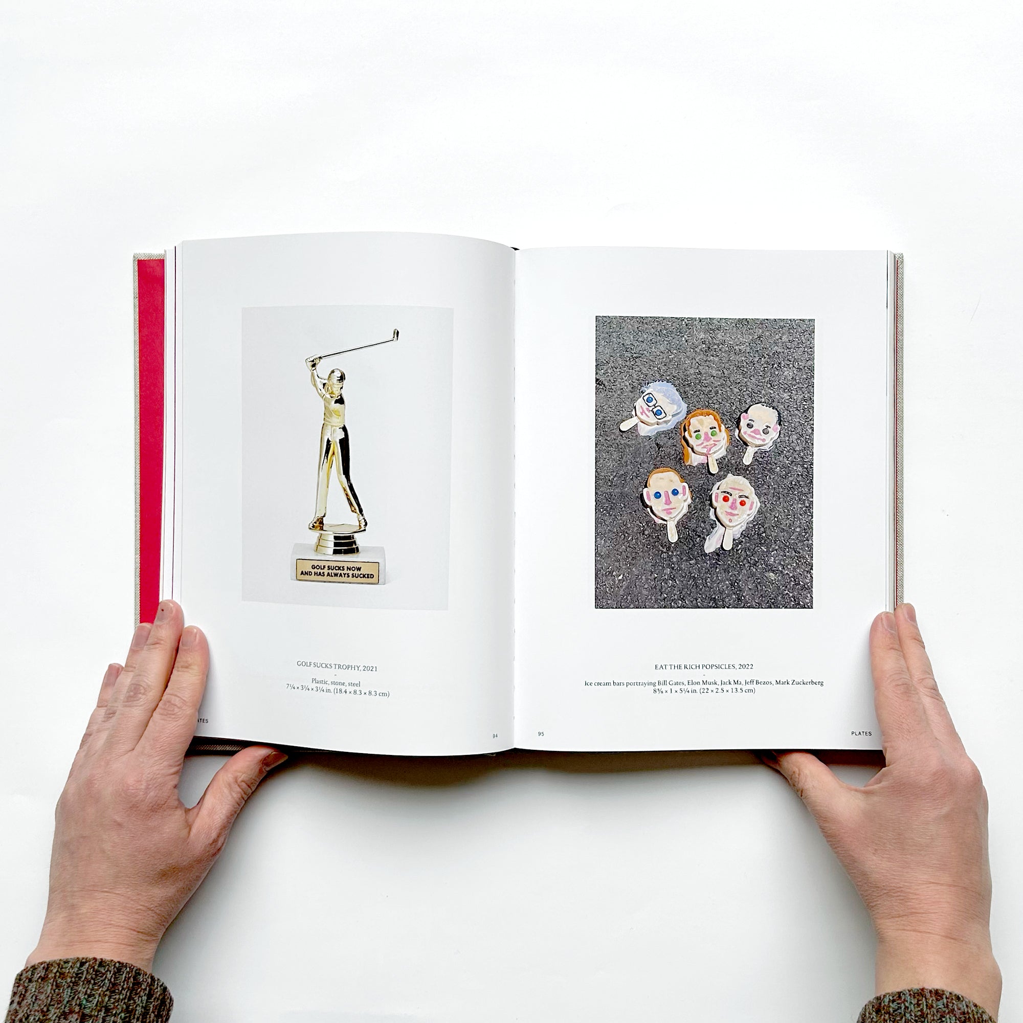 Projects include: Big Red Boot, a pair of cartoonishly large rubber boots; Jesus Shoes, their designer-branded sneakers filled with holy water; ATM Leaderboard, an ATM installed at Art Basel Miami Beach that ranked users by bank balance; and Severed Spots, in which they cut out spots from Damien Hirst prints and sold them as individual art works.