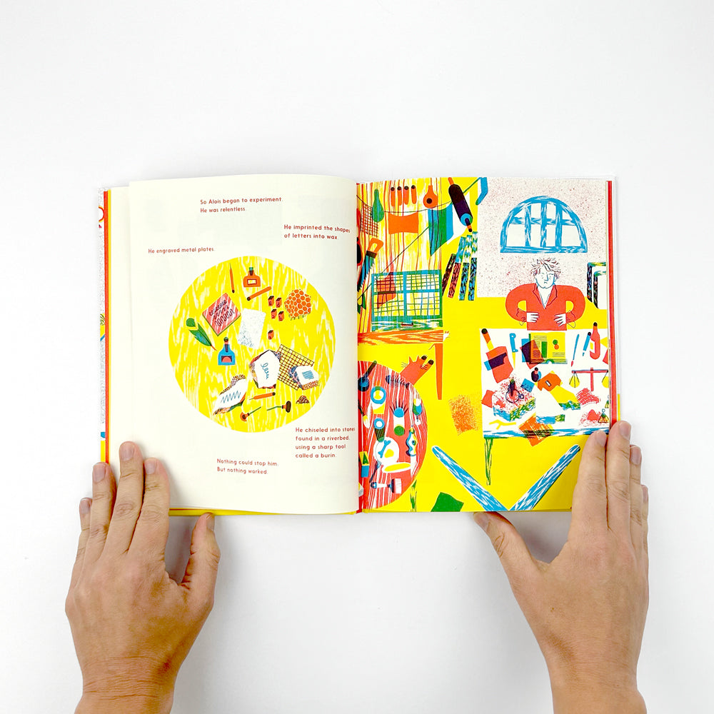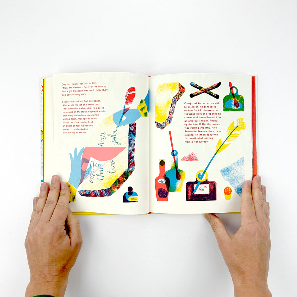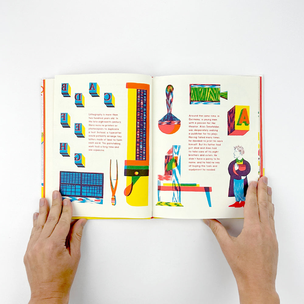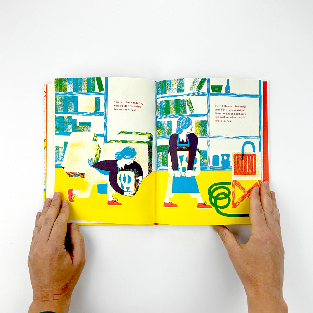 The second children’s book from David Zwirner Books, Meet the Lithographer continues our mission to illuminate different elements of the art industry. The playful illustrations, printed in three striking colours, offer a unique experience of the printed medium and showcase the magic of the lithographer’s world.